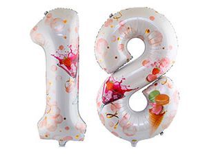 Комплект из двух фольгированных шаров-цифр 18! Эффектное обозначение праздника! Шар имеет встроенный клапан, что упрощает надувание. Тонкая миларовая пленка позволяет шарам не сдуваться более недели.