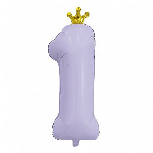 Шар (32"/81 см) Цифры "1" с короной Лаванда в упаковке